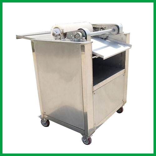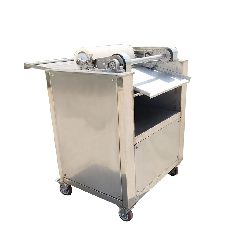 把魷魚(yú)板等原料放在進(jìn)料板上,在壓輥的配合下設(shè)備自動(dòng)完成去皮作業(yè),壓輥可牢牢穩(wěn)定住大片的魷魚(yú)板,不左右晃動(dòng),從而大大提高出成率。投入口、托盤(pán)等部位容易拆裝,便于無(wú)死角清洗。