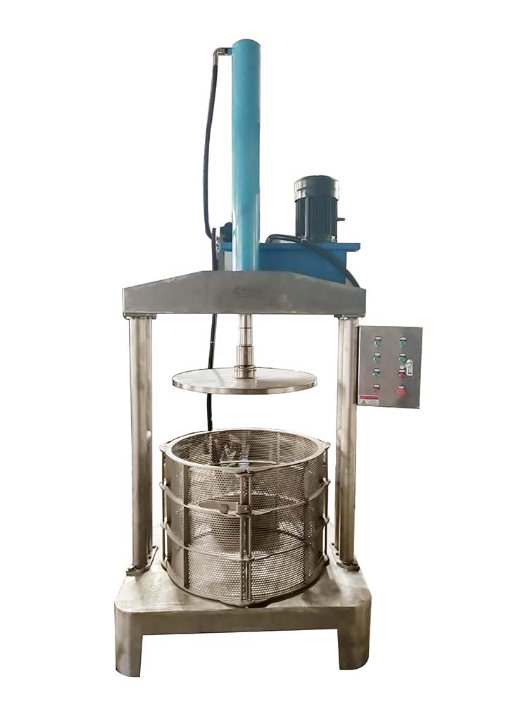 將解凍好的魷魚放入擠水機料斗內(nèi),擠水機液壓缸自動下壓,將魷魚體內(nèi)多余的水分擠出,以便于調(diào)味吃料充分,使烘烤后的魷魚絲味道更鮮美,口感綿柔不粘牙。
