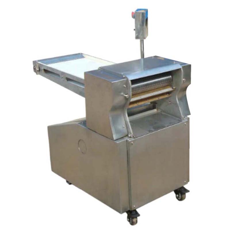 擠絲機是把 2.5mm 厚魷魚板順纖維絲擺放到輸送帶上.經過絲輥相對轉動擠壓形成 2.5mm*2.5mm 方形條狀魷魚絲,魷魚絲的形狀取決于絲輥的規(guī)格,具有高產高效、省時省力、操作簡便等優(yōu)點,該設備設計合理,噪音小,結構緊湊,人性化設計, 工作省力。且便于操作,安全衛(wèi)生,宜于眼觀。傳動平穩(wěn),傳動動力準確高效,還有 噪聲音小、無震動、性能優(yōu)越等特點。