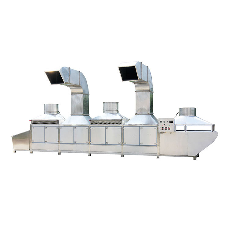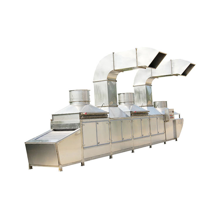 將物料放置在烘干機的網帶上,物料沿著隧道通道向前移動。熱空氣通過頂部數臺軸流風機和渦流風機作用下進行循環(huán),后排出低溫高濕度的空氣,平穩(wěn)高效地完成整個干燥過程。進料和出料在隧道兩端進行,主要用于海產品、果品、蔬菜等農副產品、中藥材、寵物食品等的烘干,因采用空氣對流循環(huán)方式,對產品絕對無污染,完全符合食品衛(wèi)生標準??諝饪裳h(huán)利用,干燥效率顯著提高。