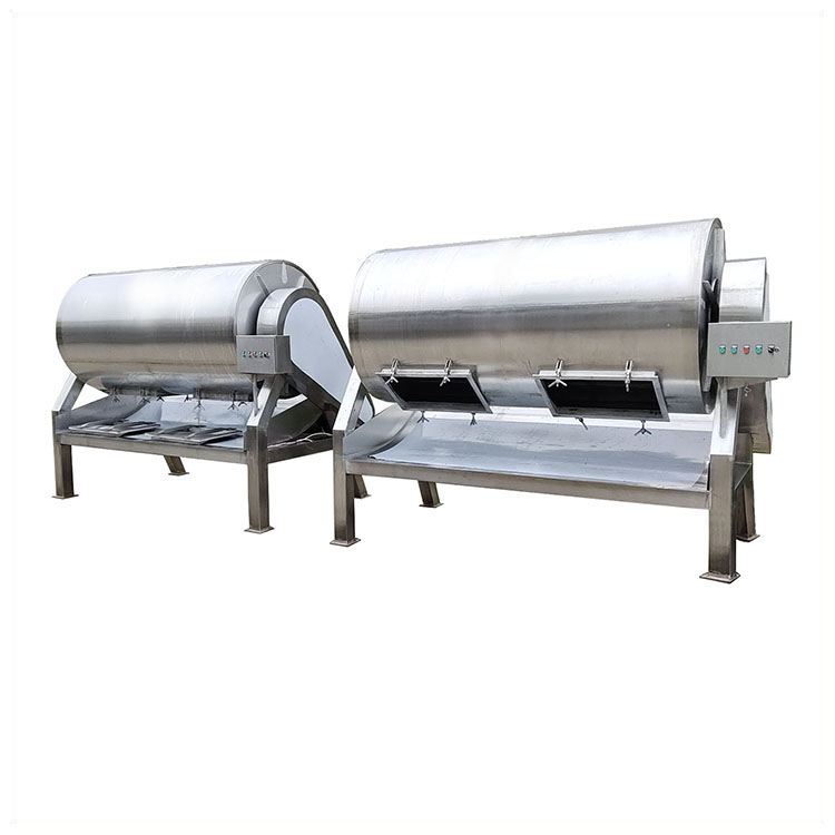 博瑞機(jī)械滾揉機(jī)槳葉圓弧形,設(shè)計獨特,工藝復(fù)雜,使腌料分布均勻,對產(chǎn)品表層不造成傷害,使產(chǎn)品的柔嫩性和外觀得到提高。本機(jī)是在真空狀態(tài)下,利用物理沖擊原理,讓魷魚片或魷魚條、肉餡等在滾筒內(nèi)上下翻動,相互撞擊、摔打,從而達(dá)到按摩、腌漬作用。腌漬液被產(chǎn)品充分地吸收,增強(qiáng)產(chǎn)品的結(jié)合力及彈性,提高產(chǎn)品的口感及斷面效果;可以增強(qiáng)保水性,增加出品率;可以改善產(chǎn)品的內(nèi)部結(jié)構(gòu),通過我們廠家生產(chǎn)的大小型真空滾揉機(jī)能使產(chǎn)品體蛋白質(zhì)分解成水溶性蛋白,易被人體吸收,真空腌制機(jī)具有肺呼吸功能,讓產(chǎn)品在滾筒內(nèi)膨脹,縮小了往復(fù)運(yùn)動,改善了產(chǎn)品組織的結(jié)構(gòu),提高了切面效果。電機(jī)變速箱、真空泵、電器部件均采用國家知名品牌,以確保整機(jī)質(zhì)量。